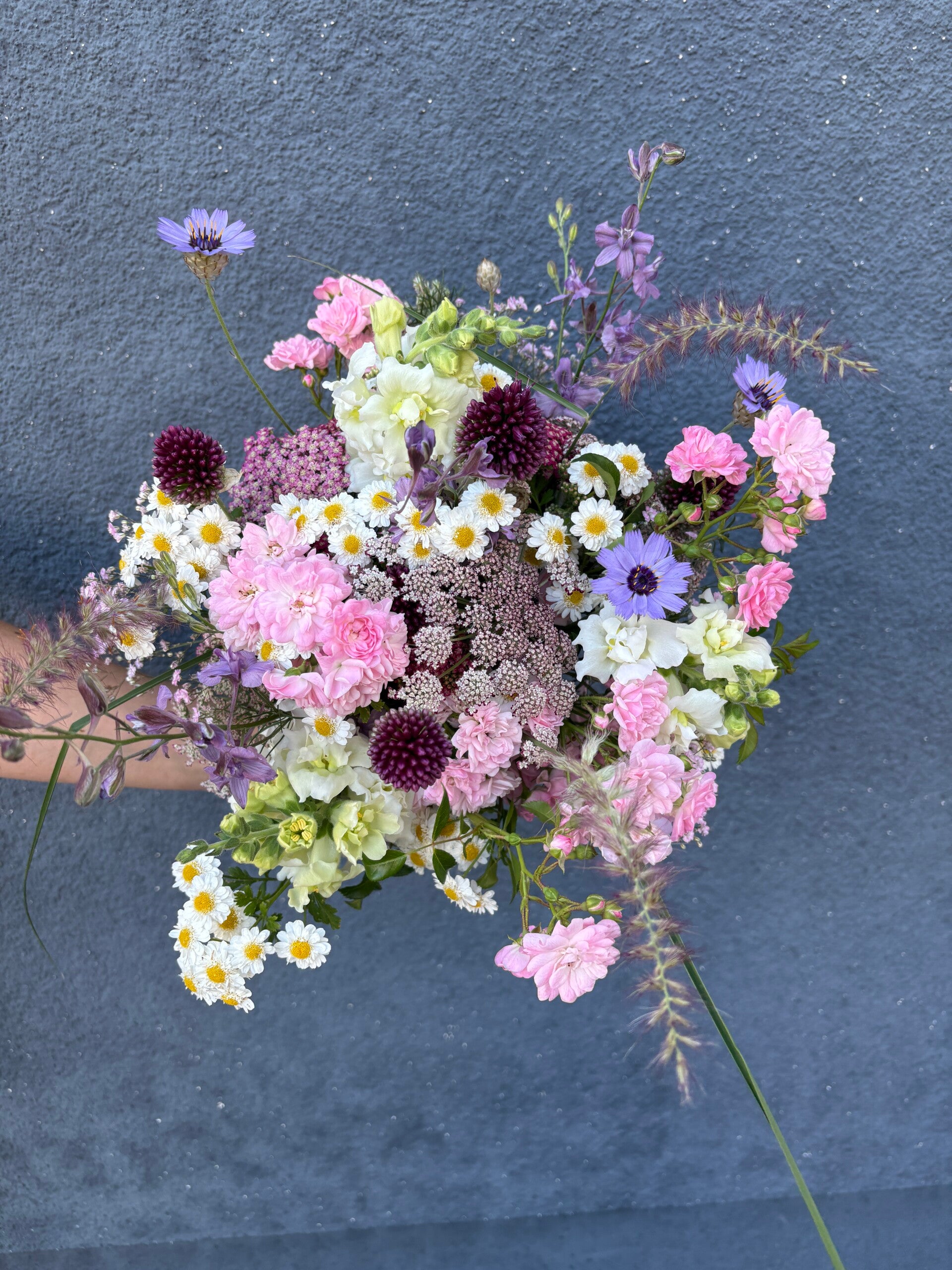 „Dass es mit Schnitt & Blumen jetzt hier vor Ort die Möglichkeit gibt, so tolle Blumensträuße zu bekommen, freut mich sehr. Sie sind vielfältig, saisonal, individuell abgestimmt und natürlich wild gebunden - genau mein Geschmack.“