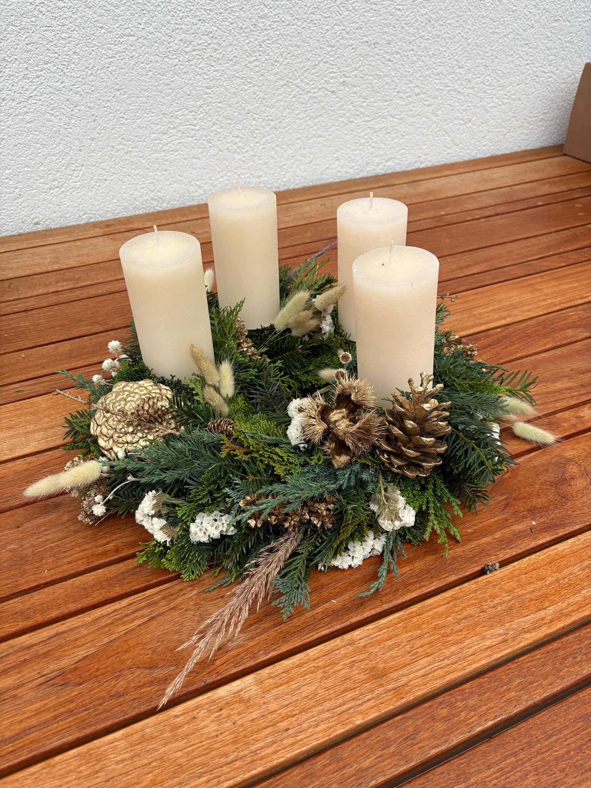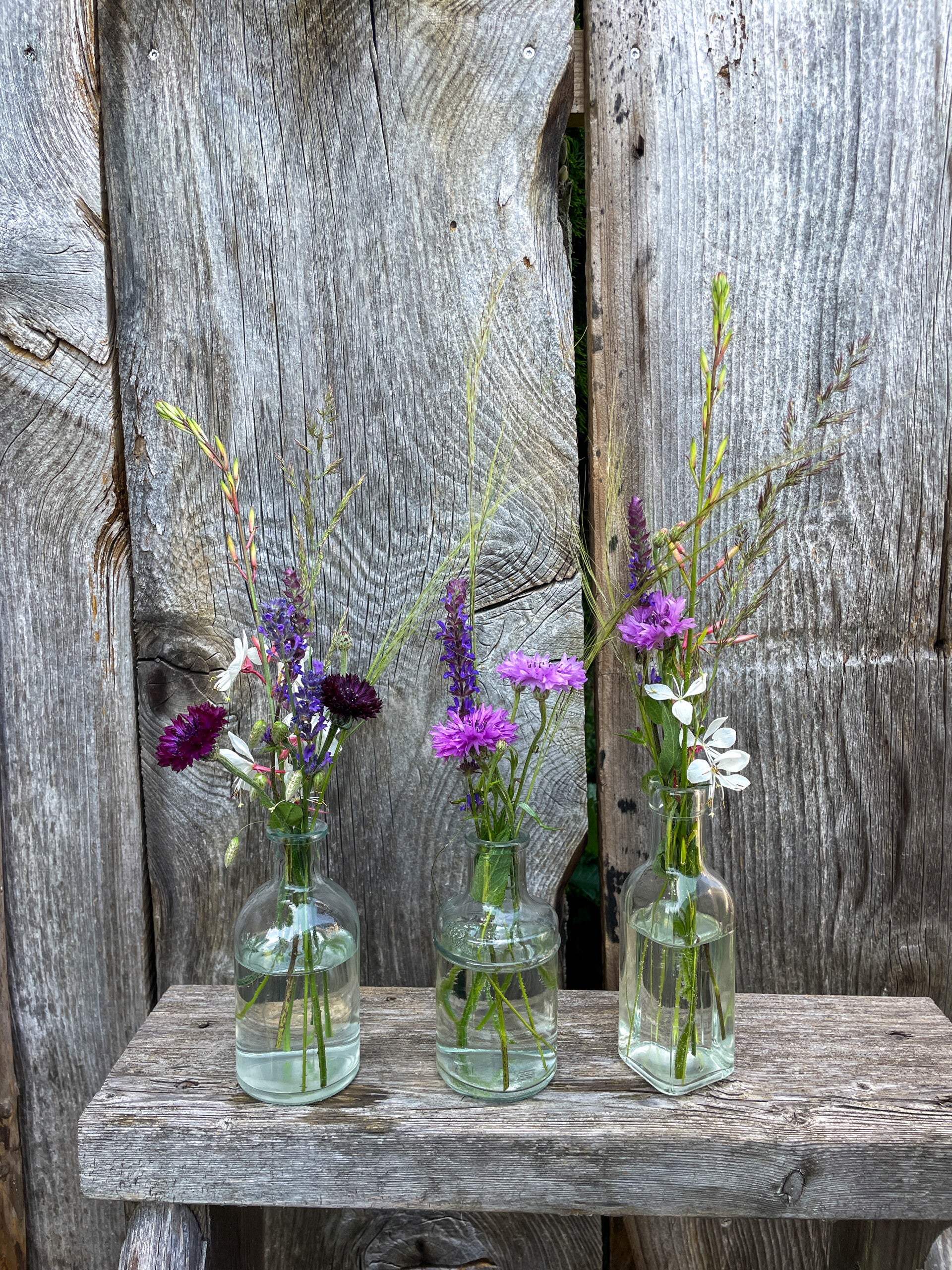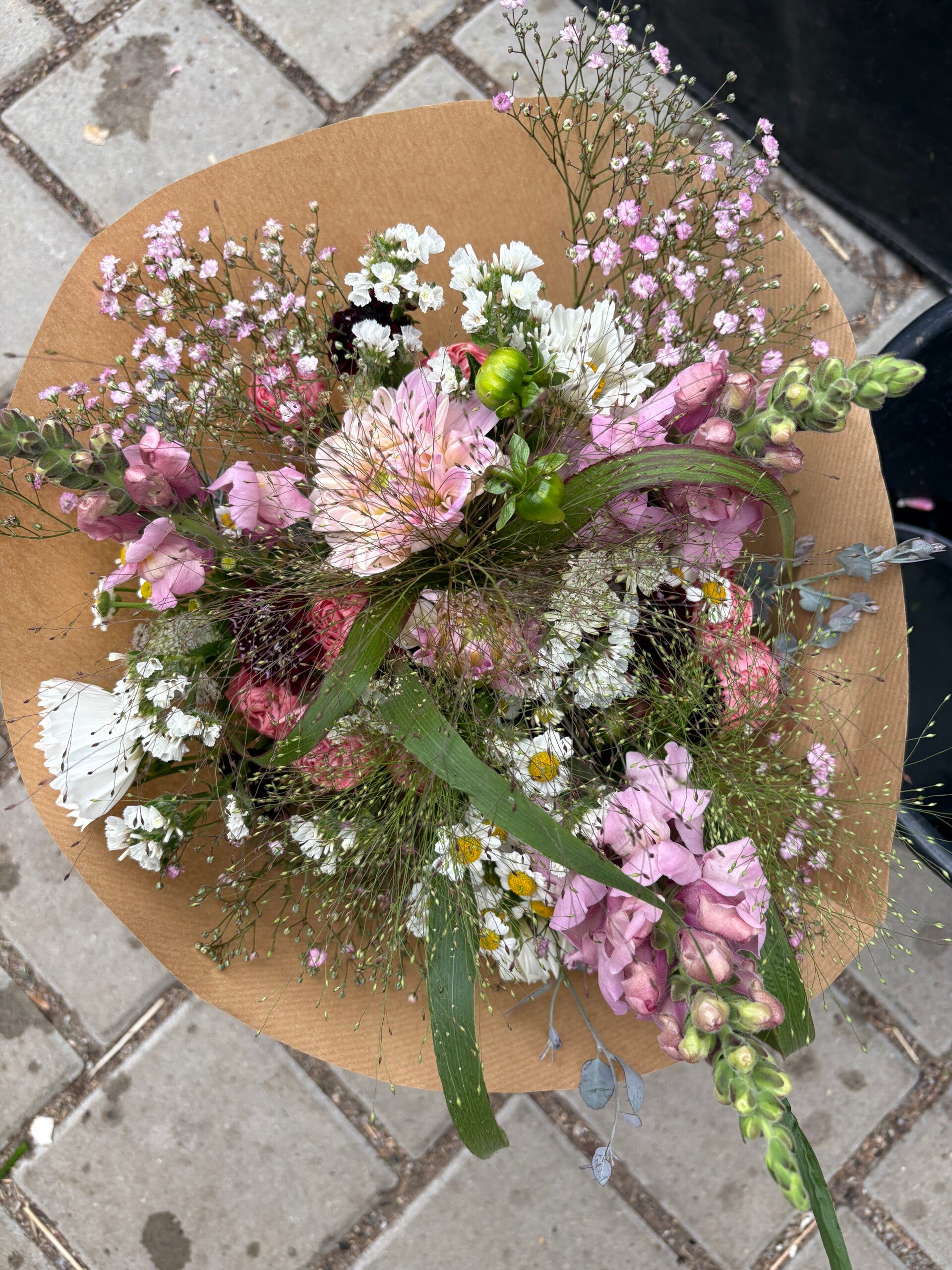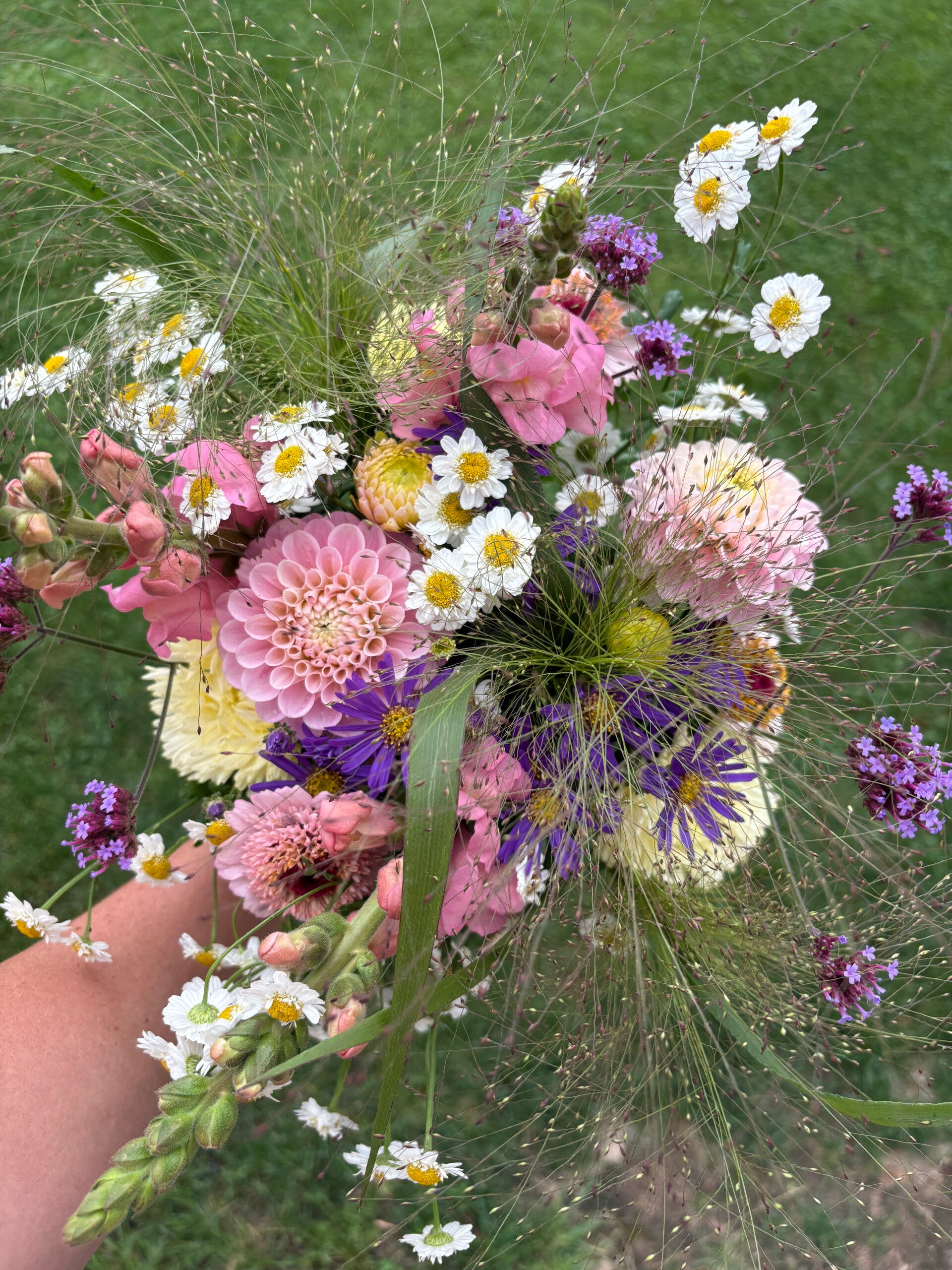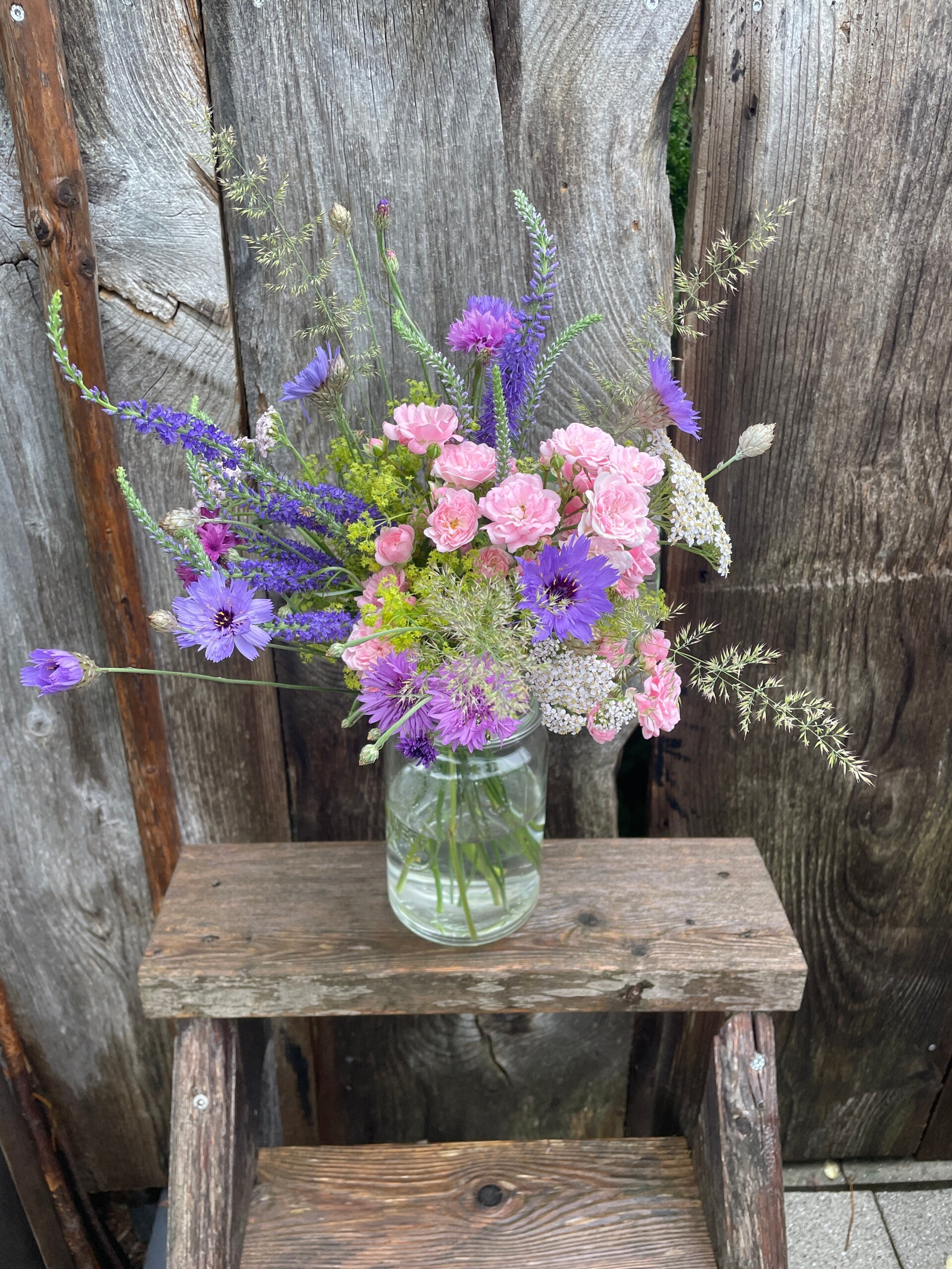 Wir starten im Frühling ins Blumenjahr mit Ranunkeln und Anemonen, gefolgt von Pfingstrosen, Rosen, Dahlien über den Sommer und beenden die Saison im Oktober mit den Chrysanthemen. Die Hauptblumen kombinieren wir mit mehrjährigen Stauden wie Frauenmantel, Schleierkraut, Sterndolden und Astern sowie verschiedenen Gräser und einjährigen Blumen wie Löwenmäulchen, Zinnien, Skabiosen und Rittersporn.